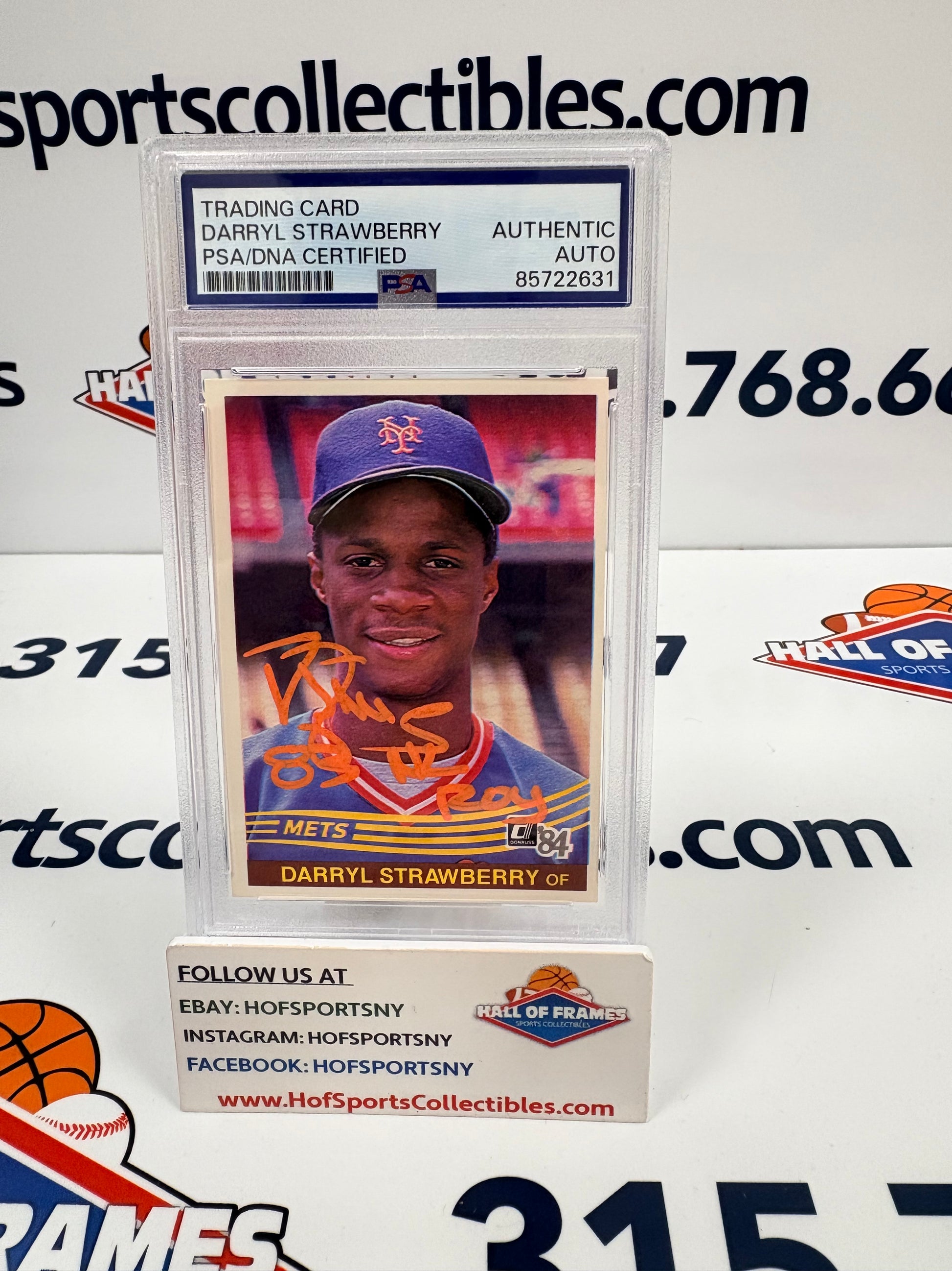 1984 DONRUSS DARRYL STRAWBERRY SIGNED ROOKIE INSC. 83 NL ROY PSA SLABBED